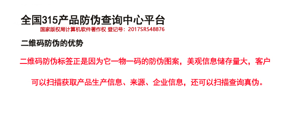 A3:穩(wěn)定的24小時(shí)防偽查詢系統(tǒng),安全入網(wǎng)要求企業(yè)出資質(zhì),保證供貨周期,完善的售后服務(wù)。